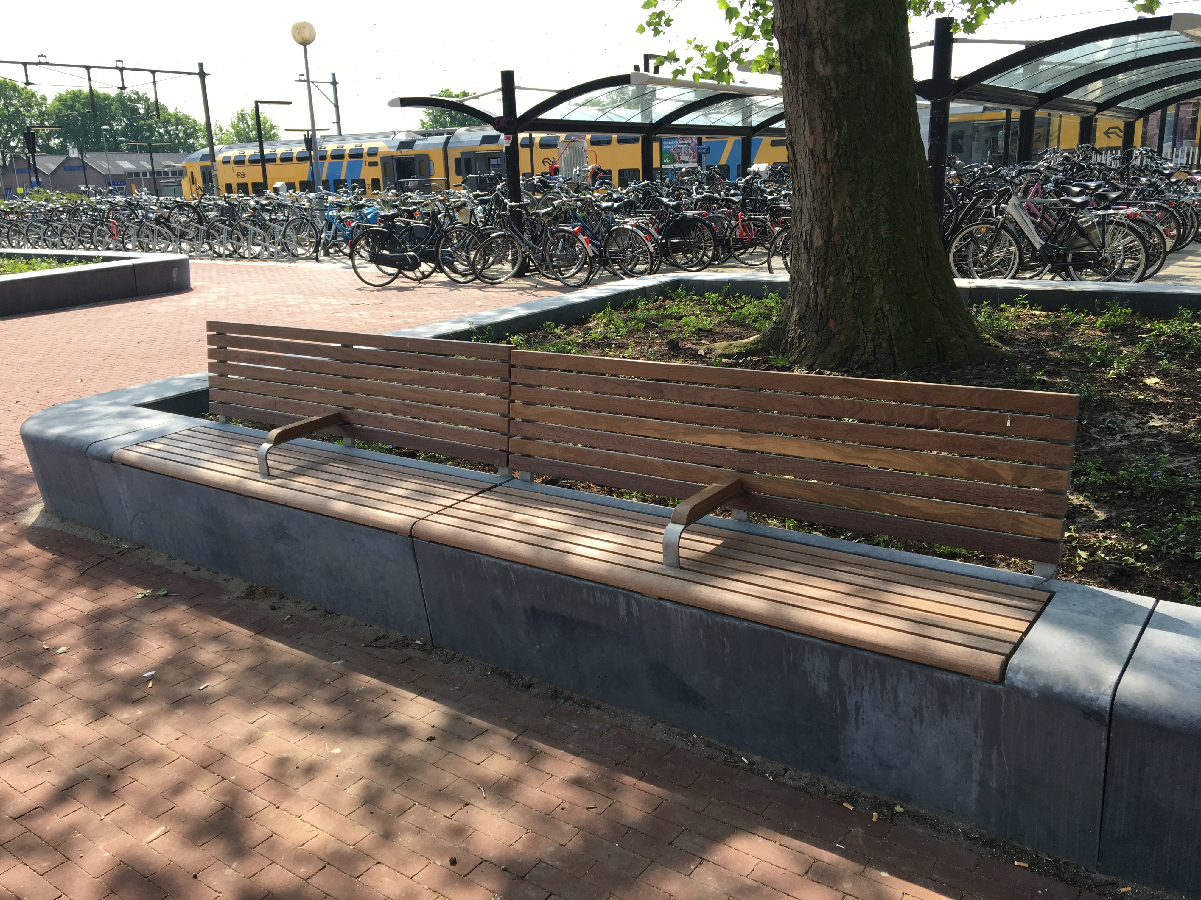 In een stationsgebied is het altijd prettig om voldoende zitgelegenheid te hebben.