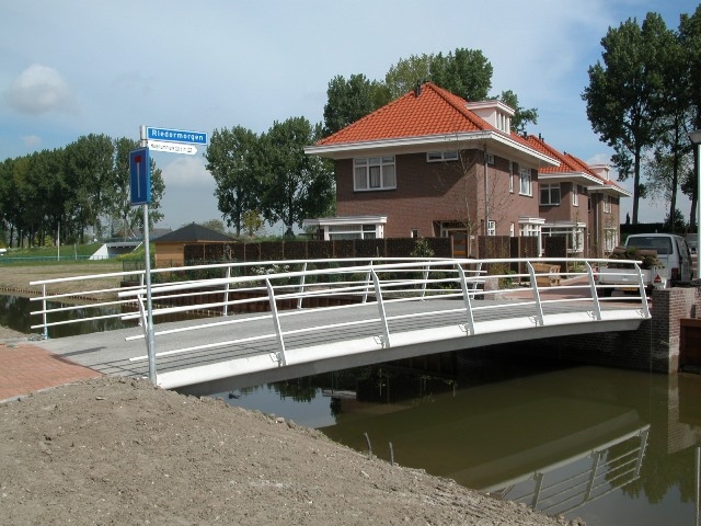 De randafwerking geeft de brug een aantrekkelijk slank aanzien. Op deze randafwerking is een leuning te plaatsen, die eventueel ook gemonteerd kan worden op onze fabriek.