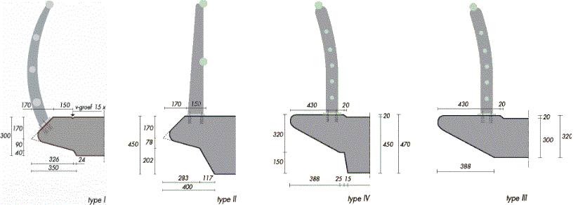 De dikte van het brugdek bedraagt 300 mm bij de lichte belastingsklasse en 450 mm bij de zwaardere uitvoering.