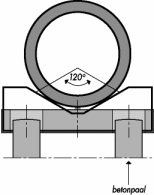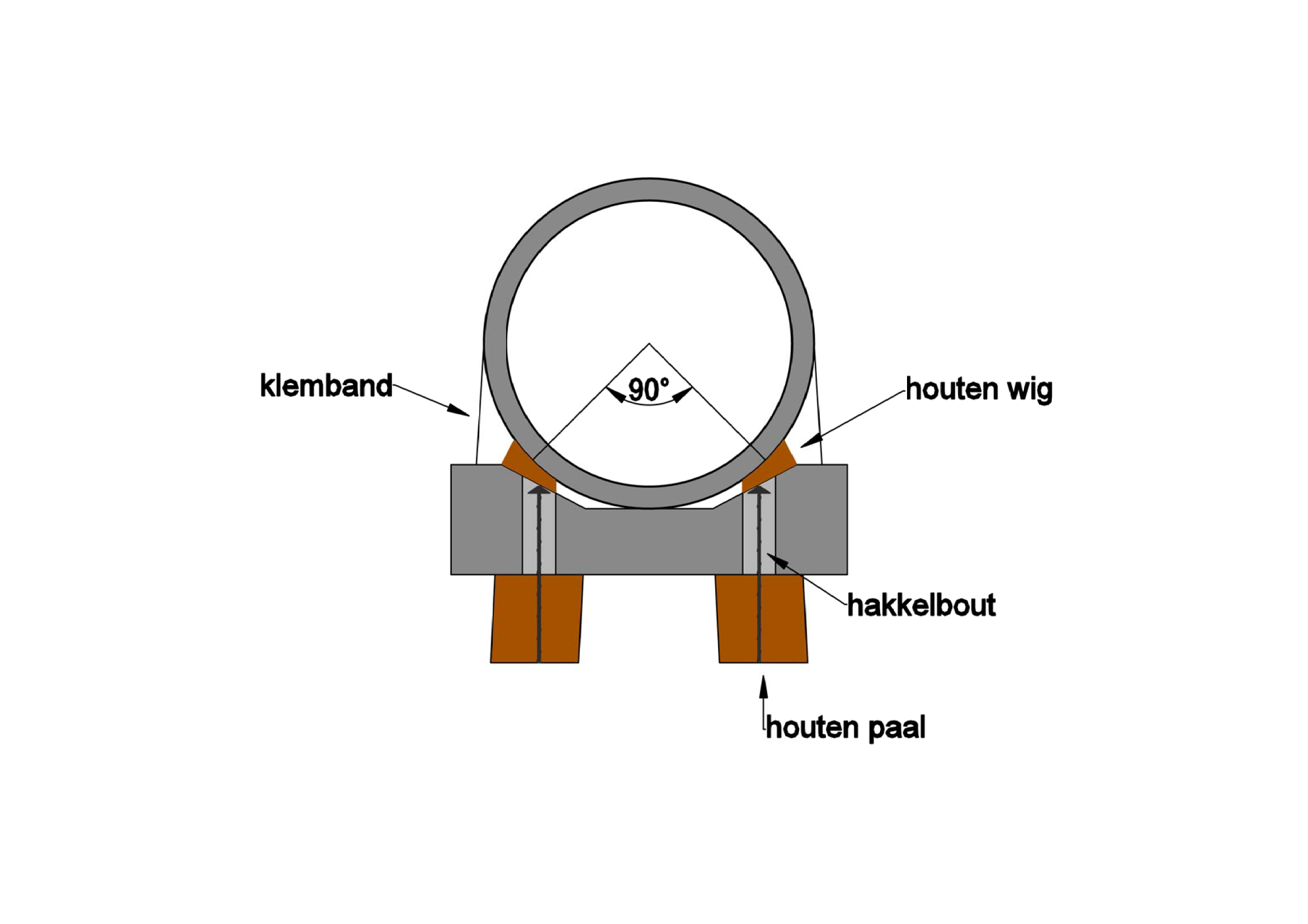 Compleet met oplegwanden, geschikt voor houten heipalen met de oplegging van de betonbuis d.m.v. houten wiggen.
