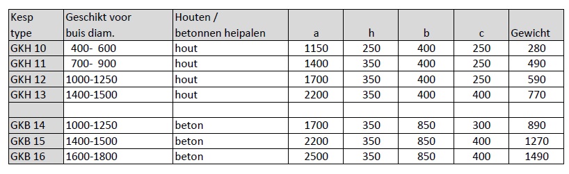 Geschikt voor houten of betonnen heipalen. Na het plaatsen van de betonbuis worden de kespen opgestort.